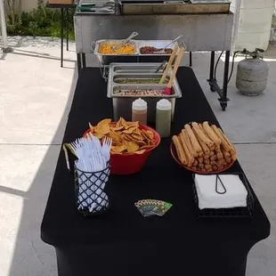 Chocolate Fountain dessert set up and taco man in my backyard by the pool!