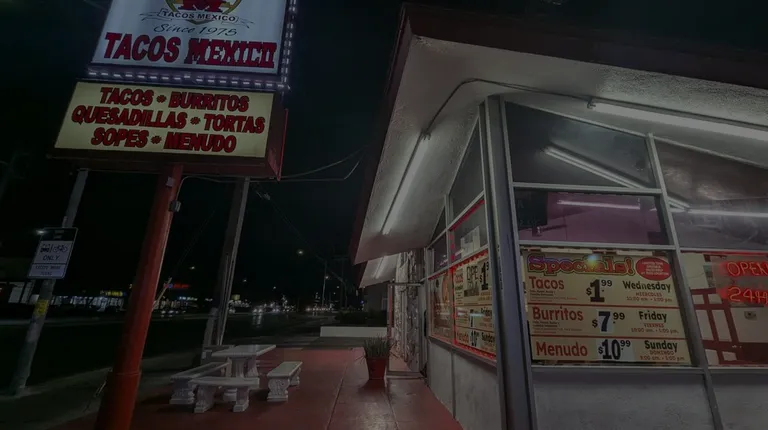 Tacos Mexico is a chain of Mexican sort of fast food restaurants located in southern California and vegas possibly other locations too. Some locations are better than others also some may be open 24hr. It not the best nor the worst but when it's late night and options are dwindling fast this beats wanna be authentic major food chains. At least this is real meat, some chilis, etc etc reasonable prices I believe they may be owner operated because prices may vary and items available may vary depending on location if unsure try to call ahead and ask if any questions. Enjoy