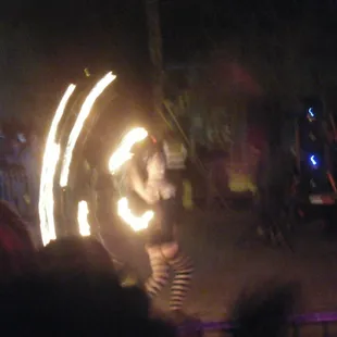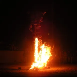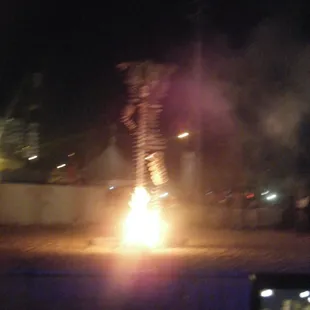 In conjunction with First Friday, this first time spectacle generated a ton of buzz and alot of people came out to see the burning of Lucky Lady Lucy, signifying a new beginning and a stronger sense of community in Las Vegas. The media was also on hand and up in the air as well, as was the Po-Po and the fire department to ensure everything went as planned. Props to the people who constructed Lucky Lady Lucy who was also dressed for the occasion sporting a skirt, bikini top, and a boa just like a Vegas Showgirl.Props also to the Burning Man Organization, where representatives from Seattle, Portland, San Francisco, and Vegas provided the inspiration and entertainment for the eveningwhich was cool at first, but seemed to drag on just a bit too long. People started to bail little by little, which was cool with me, cause my view got better! They also put on a fire showof flame throwing and hula hoop spinning. They also took a page from Polynesian fire knife dancing and poi bowl twirling and did their own creative version of it. Next came a ghetto style burning man opera which was kinda entertaining, but some of the crowd got restless as more time passed, and grandma who was in the crowd led a chant of "Burn that b@#!h"others seemed to go the Jim Morrison route and scream "c'mon baby light my fire!" After all the entertainers were cleared out, Unlucky Lucy was stripped down, set up with burn gel, dowsed with kerosene, then the CEO of Zappo's lit the fuse which created not a blaze, but more of a creeping fire, and when it hit Sally's crotch area, a spectator got everyone rolling by saying "she's got a burning sensation between her legs!.....Yeast infection????"....always a comedian in the crowd!A few minutes later Sally was totally engulfed in flames, and before you know it, she was extra crispy.....THE END!.......ALOHA!!!YELP 365 CHALLENGE-(190/365) " Burn Baby Burn!"