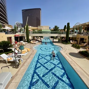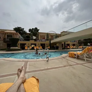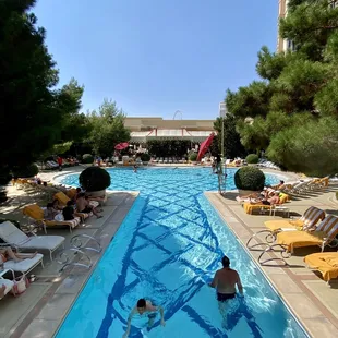 This review is for the adult pool. There's a lot I enjoy about this pool, including: asking people where the "European" pool is, drinking fancy vacation drinks such as watermelon margarita inside a mini watermelon, fast bartenders and friendly waitresses in red swim outfits, being low-key topless, and talking about how I need to learn craps, because poolside craps. All of this is quite expensive obviously, but you get what you pay for imo.