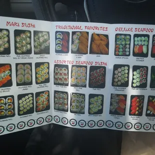 the menu for the restaurant