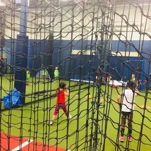 All seven cages collapse making the facility one large area. This allows more things to played such as dodge ball, soccer and kickball.