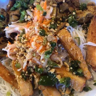 The incredible Vietnamese food that I ate here is haunting me....still craving it hardcore but I can't find anything like it now that I'm back home in SD ; ( They have all the hits here from pho to goi cuon to bun and bahn xeo. They all taste great, and in SD it's imposible to find this variety, much less this high quality, at any single Viet spotFor me the #63 Pho Ap Chau Chay stole the show--the ample portion, generous mix of fresh Veggies and tofu plus mild pho-flavored broth was all good but the still crunchy, wide noodles on the bottom of the dish were a new delight that nearly brought a tear of gluttonous joy to my eye. I just couldnt quit them til they were all gone. I also enjoyed bites of the shrimp Bahn xeo, which had a pleasing curry flavor, was light and crisp (not oily) and bountiful enough to share amongst 5 diners. The shrimp egg rolls were also good, with only a thin layer of fried exterior to complement each juicy, plump crustacean.I'm not a frequent Vegas traveler so I'll have to either sonehow find a local substitute or learn to make this exact Pho Ap Chau Chay on my own sometime soon before I become submerged in the treacly depths of culinary longing.