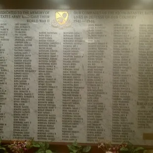Clubhouse Memorial Wall - building is dedicated to the men of the 100th Infantry Battalion who gave their lives in defense of America.