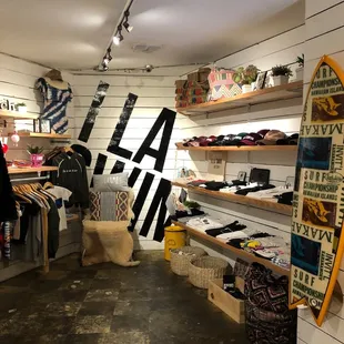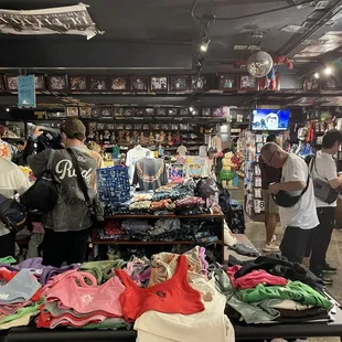Visited this location 2x and am happy with purchases overallBought 2 t-shirts, tanks, & sweat pants. Designs are very fun. Quality is ok, sewing is not the best on the t-shirts. I already washed (in cold) one shirt (no dryer) and the collar looks very relaxed, lost all its shape (looks messy). The other t-shirt came out of the wash fine.I'm happy to shop & support local, so will return for another treasure hunt. But will be inspecting merch closer.Atmosphere: fun, loud, sorta like treasure hunting. Had two cute dogs hanging out (Whiskey & Ila).Service: 5 starsValue: A bit overpriced for the quality of t-shirts.Shout out to exceptional employees!!- Arcella (sorry if I misspelled), Chatted with her both times I visited.- Jack, he rang me up & helped me figure price of sweats that didn't have a tag.Also visited their other location. Smaller store, less busy when I visited. 403 Kaiolu St (about a 2-3 min walk from this original location). Angel, another exceptional employee, helped me find sizes & rang me up.