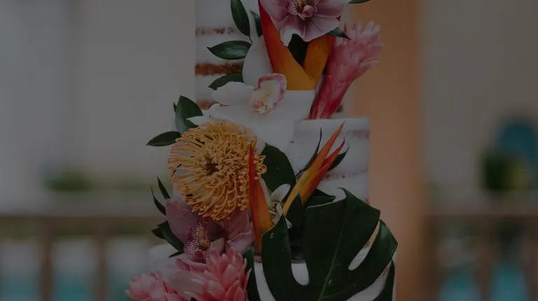a wedding cake decorated with flowers