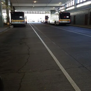 woops, that guy got in the middle of the pic. The busses wait in the huge unloading area of the transit center in the shade.