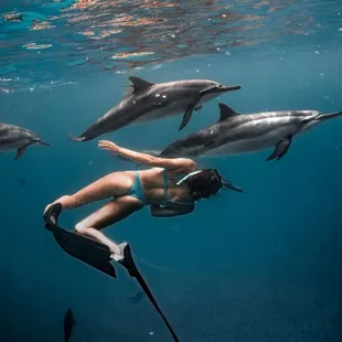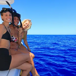 This is an amazing intimate experience where you can chat with captain and crew- 1 captain and crew1 lifeguard Rebecca that gets in the water with you. I am single mom with 2 daughters and there was one other single mom and son on this tour so small group of 5- they are very knowledgeable and passionate about the dolphins and both captain and Rebecca didn't take an eye off of any of us while in the water we were very safe and well looked after- when my daughter had a hard time breathing through her mask and getting the hang of it Rebecca swam up immediately to assist. Would definitely do this again with this team!! Hands down best experience here on the Island to date and beautiful boat!!!