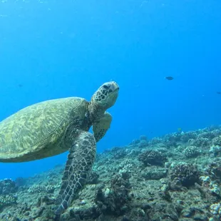 Honu! No filter or zoom here -- this photo was taken with my iphone under water and he was THAT close, along with a bunch of his friends.