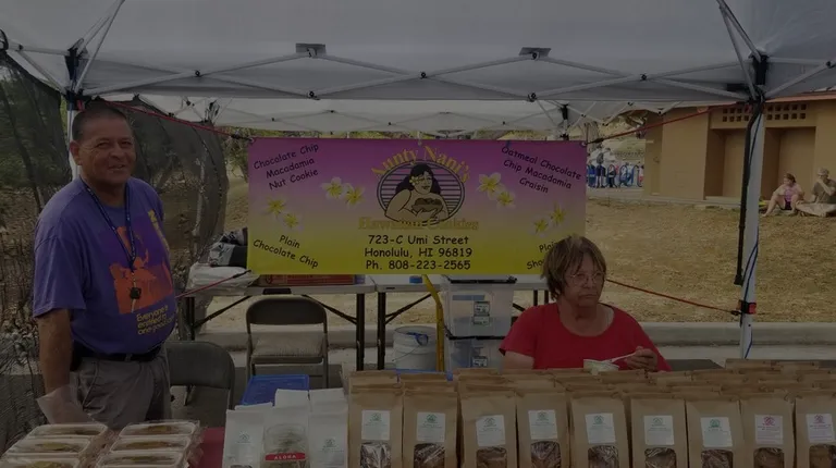 I went to the Foodie Con at the Blaisdell when a lovely lady gave me a sample of her chocolate chip macadamia nut cookie. It was so delicious! I bought a bag and devoured the whole bag to myself. I couldn't get enough and had to find out where she sold her cookies. I had to look her up online and try to find a way to get a hold of more cookies. Their crispy macadamia nut chocolate chip cookies were the best cookies I've ever had! Yes, I went on a little stalking mission to find where she sold these delicious cookies.I found her email address and off I went to ask where I could purchase more of her cookies. Aunty Nani responded and said I could pick up the order at the Gateway Center or find her at some of the farmers markets. It felt like I had my very own cookie dealer!She was so sweet and said that texting her was easier for her to respond to than email. She implied she wasn't too keen with technology. Awww, such a sweet aunty.She texted me to say she was at the fair on Tuesdays at Waimanalo, Thursdays at Kapolei and Saturdays at Ala Moana on the 2nd floor near the Target entrance. Score! I decided to find her at Ala Moana that Saturday and met this lovely lady. I bought the Cranberry Nut cookie and the Macadamia Nut Chocolate chip cookies. The best ones are the Macadamia nut chocolate chip cookies and I get why it's so popular. I met Aunty and she was such a sweet lady. She smiled and remembered who I was and I just told her how much I loved her cookies. I believe a family member was helping her out at the table and he said how much she loves baking. I could tell that she takes pride in making these cookies and the love that goes into making them. It's an amazing delight... I honestly have not had any cookies taste like these before. I had to yelp this business because I had to share this with my fellow yelpers. You're welcome, Yelp Fam... you're going to fall in love with these cookies. Go support your local Aunty.