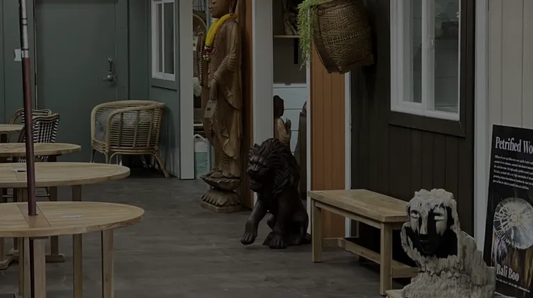 We happened to stumble across Bali Boo living while looking for another business.What a cool store!Located in the Quarry road district in Kailua. You may not know it's there, but it's been in business for 20 years and growing that they have 3 other warehouses next to each other!The main showroom has the coolest water fall outside the doors.When we walked in, we were greeted by cool air conditioning , Bali furniture and the manager Michelle who was very nice.They have items such as mirrors, drawers, dining room sets, rugs, coffee tables, chairs to little wooden jewelry boxes, door stoppers and brass fixtures for cabinets.Now if you go towards the back that will be the Koa room, which has beautiful detailed furniture made by a gentleman named Fritz , who is in the other warehouse across the way. The dining room sets are absolutely masterpieces.You also have upstairs with alot of fun stuff.Michelle was kind enough to show us more pieces and the stories behind all the woods used from Mango, Monkeypod to Koa wood from Bali to here.You could tell she loved working here.She showed us the "Buddha room" my favorite, which has different sizes of Buddha and Easter Island- like fixtures for indoors as well as outdoors and huge paintings to delicate table vases and coasters. The warehouse that Fritz works in had whimsical wood items, that you can enjoy to look at my pictures below, and I took alot of them! LOLThey also have some cool waterfall fixtures and Buddha statues to Zen out any garden.If you get a chance to venture out here, please visit them and have a drink at Koolau Distillery around the corner!Support local businesses!Enjoy my pictures!