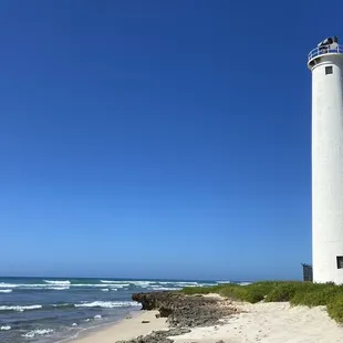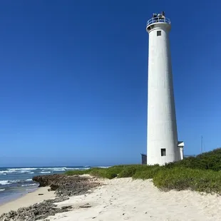 Talk about a hidden gem! My husband was born and raised on Oahu and I've lived here for 11 years but never knew about The Barber Point Lighthouse until a military friend who just moved here posted pictures of it on her Facebook. After seeing her pictures I was determined to check it out for myself but the other Yelpers' reviews had my second guessing myself.First...you don't need to trespass onto Germaine's Luau property. Veer left into the lot and follow the beach towards the lighthouse. It's literally a 5 minute walk on the beach. How can that not be enjoyable???Second...we didn't notice any "inside of a butthole" smell as one Yelper complained of. Third...there wasn't just one broken picnic table. There were at least 3 intact picnic tables nestled along a palm tree lined beach.Fourth...there was a lot more sand area than we thought there was going to be AND it was clean. It's not necessarily the most kid friendly, but on a calm day kids can play in the water. In fact, my kids and another family frolicked for a bit.Fifth...when we first got there we didn't see any signs of "sketchy people." HOWEVER, as we were leaving we definitely saw them near the showers, bathroom and lot. Nobody bothered us and I see 100x that amount of sketchy people at Ala Moana Beach Park. All in all... not a magnificent beach but not the worst either. Definitely worth a trip to check out the lighthouse and collect seashells.