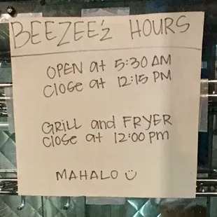 Awesome Food ! Super cheap but so tasty! They service everything from eggs. burgers, spicy chicken or teriyaki chicken. Open @ 0530 to 1245. They offer daily specials but you must call in orders because they see out by 10:00am