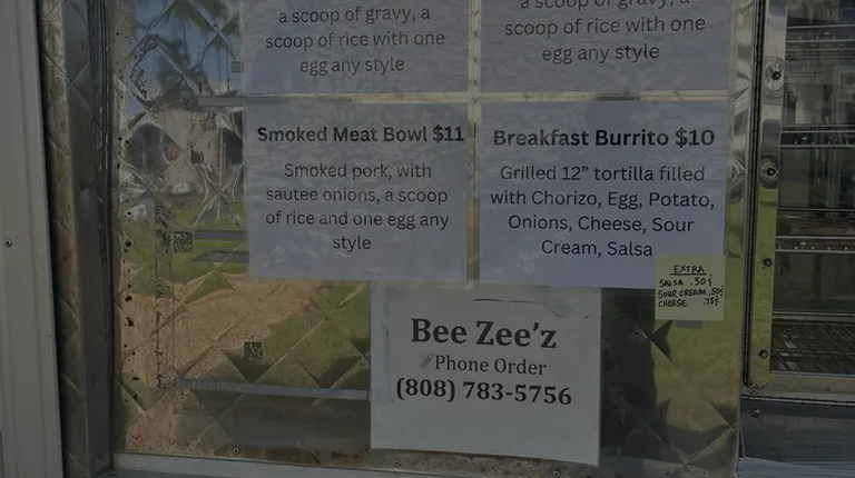 Introduced my new students to this hot spot wagon. It's Friday and everyone is ordering the Hawaiian Plate Special Lau lau, Kalua Pig and etc.But I my eyes caught the smoked meat and onions, something not to many places serve.Everyone with me order the same and with no disappointment. It was fantastic!! What supposed to have been breakfast filled me up till dinner. Maybe next week I'll try the Hawaiian Plate Special. Thumbs Up Bee Zees.