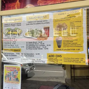 Interesting concept. Adding options like cheese to Bing makes the price go wayyyy up. One bing with cheese, one salad and a bottle water with tax was $33, which seems high for what it is.Taste was pretty good, and the Bing was definitely something unique. Salad was good but I feel like $13.50 is too high for the size of the salad. Overall, I probably would not come back just because of all the options in Chinatown.It deserves 3.5 stars but that's not an option. I can't give 4 stars to a place I likely won't return to. My advice to owners is to bring cost of extras/add ons down. Or try to find a way to add extra value.