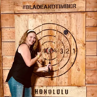 This was my first time, and Kelly made it a great experience. I was having trouble landing the axe, and she gave me some one on one coaching in a separate lane, and I definitely saw improvement. Thanks Kelly!