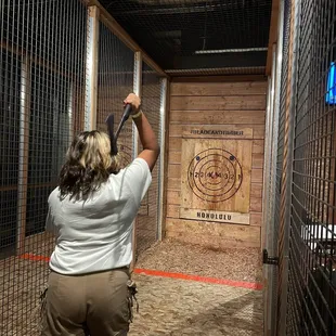 We came here for a corporate event, which reserved the entire venue for our party. Most of the other reviews explain this place best, so I'll give a review that fills in the pockets that other reviews may not have mentionedTL;DR:Clothing* Wear shoes* Dress comfortablyParking* Metered street parking ~ Free after 6 pm ~ Some park by 5 pm and pay only for the 1 hour. Street parking is hard to find after 5:30 pm* Garage Parking in the Keauhou Garage ~ 1 hour is free with validation ~ $1 up to 2-hours ~ $2 up to 3-hours ~ $4 up to 4-hours ~ $3 for every 30-mins after thatInside* You will need to sign a waiver form either on their website or in person* Have a valid IDAlcohol* You will receive a wristband for up to two drinks. I'm not sure what happens after two; however, I've seen a few posts that share they give you another band and may limit your intake.On a busy night, getting bar service might be a little tricky since the Coaches who show you how to throw the axe also manage the front door, the food, and the bar. That might knock a star down for some, so to each their own.Of course, Kyle is the star of the show in every Yelp; which is true to what every good post says about him. I forgot the names of the other coaches, but they are just as great as well.Once you get the hang of things, the Coaches will come back to show you a few trick shots. Definitely worth the fun!