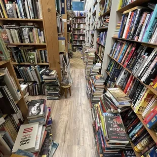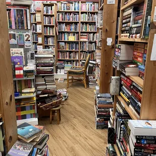 If you're looking for a legit book store, this is it. They have books for days. Shelves sagging with the weight of literary greatness. Books stacked precariously throughout the entire store. This fire hazard is a paradise for any book lover. The prices here are definitely a match for Barnes and Noble. I don't think I'd have to saw off a leg to buy a book mark here. The people here are kind and friendly. They have chairs around if you care to sit for a moment.With that being said, this place is filled with books. They utilize every bit of their space. Although it does add to their charm, I couldn't help but mind my surroundings. Granted, I am on the bigger side.It is a charming book store!