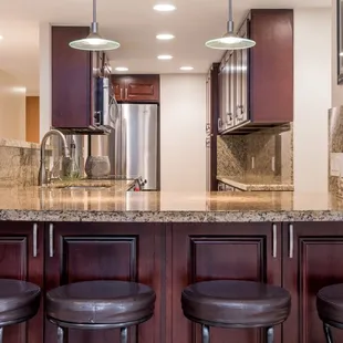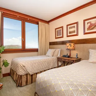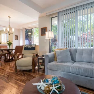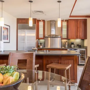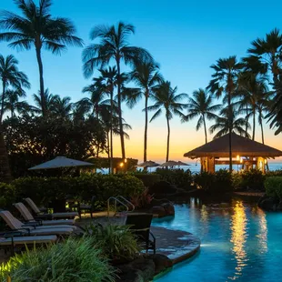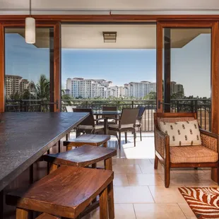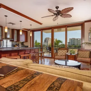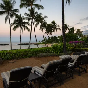 Ambiance of the room complemented by the sunset skies in Hawaii.
