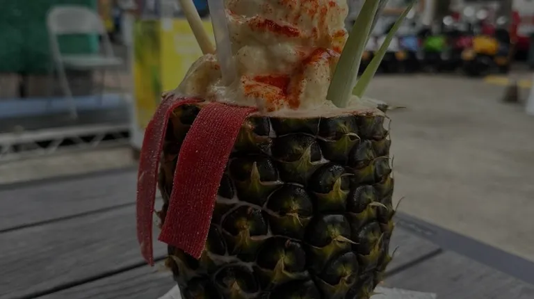 Pineapple coconut smoothie in a pineapple