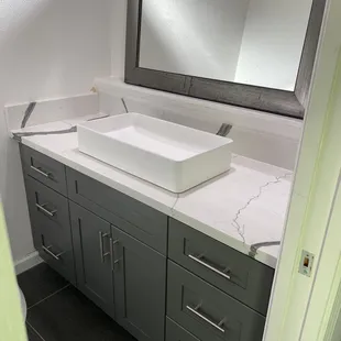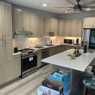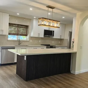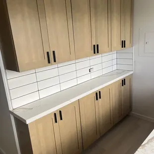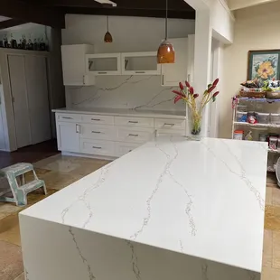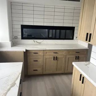 We got countertops for our kitchen and our wet bar area. We appreciate the no-nonsense, efficient, transparency from this place. Plus they have some decent products, especially for the unbeatable prices. What you see is what you get and you don't walk away feeling ripped off or up sold. You have to go into this knowing you aren't paying for high end custom stuff, so you can't nitpick about the imperfections. However, the over all end result was good for the price! These guys are so fast, professional and great to work with! From working with Chelsea in the show room to the install. Everything was stress free and a pleasant experience. The installers, Wei and his partner (I forget his name) we're so fast and professional! They were very nice, polite and accommodating! great job guys!I only wish we went with this place for the cabinets in the first place. We got super ripped off by the place we used. Next time I will go here for cabinets too!
