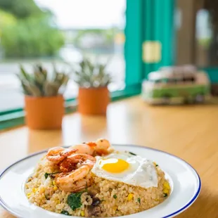 Morey's fried rice with sunny side up egg & Garlic shrimp