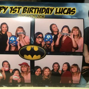 Joy and Jeremy were such a great couple to work with. They were so pleasant and accommodating. I loved the personalized layout that Joy designed for my sons 1st birthday batman theme. They arrived on time and set up quickly and the photo booth was ready to go for guest to use. It did take some guest a second try to get the hang of it but after that even the kids were using the booth all on their own. Another plus was how quickly your picture printed. You really do get your money's worth. The props were also super fun. Definitely recommending them for all parties. Thanks again capturit!