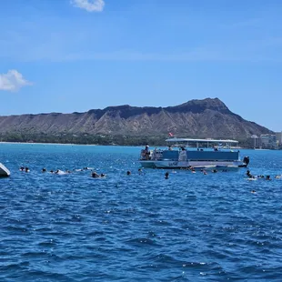 Great experience & friendly staff. All swimming equipment provided. I would recommend this excursion. Take a boat out to swim with turtles and fish. There is a photographer available, $40 extra charge for photos and video, which is optional. You can bring your own alcohol. Hawaiian chips and pineapple slices available on board.
