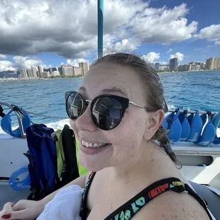 I was scared to snorkel in the middle of the ocean but Alex, Kelsey and Meg put me at ease. Meg was our caption, she's badass, she is so nice and knowledgeable about everything. Alex was the nicest person I've ever met. She is so outgoing and sweet. She helped me so much in and out of the water. Kelsey is an amazing diver and picks up critters off the ocean floor to show you. Both Alex and Kelsey did an amazing job at spotting turtles and telling us to swim their way. We saw about 10 turtles during the hour we were in the water. After we swam, they offered us drinks, chips, and fresh fruit on a cute platter. Definitely recommend booking with charter Oahu for snorkeling. Especially with these 3 women!!