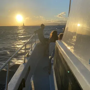 Took our first time visitors, family, kids for a sunset cruise. Captain Chris and First-mate Angelina were welcoming, accomodating, and fun; having a crew that obviously enjoys their jobs adds to the experience. We were ending our day with a beautiful sunset surrounded by dolphins, what more could you ask for? Refreshements and snacks provided, we brought some of our own as well, and Angelina made sure we all had what we needed. Charter Oahu will not disappoint.