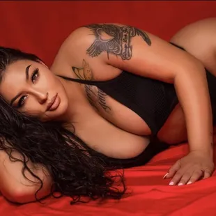 a woman in a red lingerie