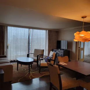 I stayed at my parents' timeshare at this location and we loved our studio room w/kitchenette. Room felt spacious for 4 people. Overall hotel seemed clean and had very fast elevators. Amenities were nice.. my dad loved the zen garden and game room. I was not impressed with the pool.. definitely not kid-friendly and half the pool is deep at 6 ft. I highly suggest they renovate the pool area so kids can safely enjoy it more. Lady at the concierge was soo pushy with her sales pitch. She even called our room after we politely declined her multiple times. That put a bad taste in our mouth. Valet was fast and efficient. Stores & restaurants within walking distance so i didn't mind the walk. Overall we had a pleasant stay.