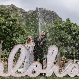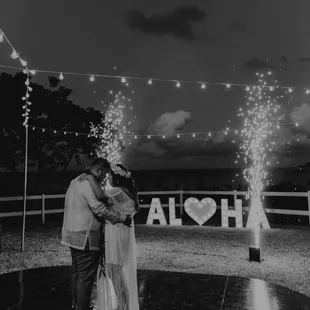 We LOVED our ALOHA rented marquee lights! They were a focal point to so many of our photos and guests photos. It was a great photobooth alternative. The placement and installation was fast and easy.