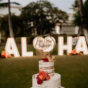 Designed with Aloha was easy to work with. We wanted to have a marquee that said "ALOHA" for half the night and have it switched up to say "MAHALO" for the tail end of the wedding. The switch was seamless and I didn't even notice they had changed it. Designed with Aloha also provided our dance floor where we spend most of the night dancing away. Thank you Designed with Aloha!