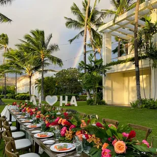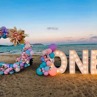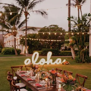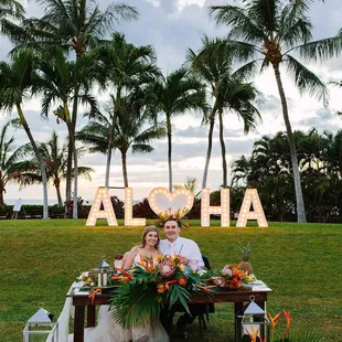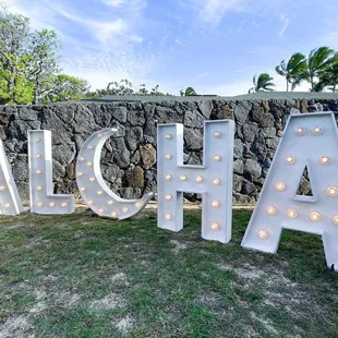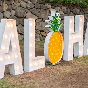 Beautiful "ALOHA" sign and easy process!We ordered the "ALOHA" marquee sign for our wedding and it was a main attraction! Everyone was lining up to take pictures with this sign and it fit so well with our venue! If the sign wasn't awesome enough, at night it will light up and continue to be an incredible visual! Do not regret ordering the sign at all as some of our guests favorite pictures are with this sign! Thanks for making the entire process so easy and definitely would recommend anyone to spend extra for the sign! You won't regret it!