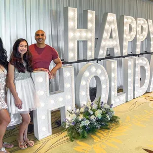 Rented a marquee event for a corporate event last week and received so many compliments and positive feedback from guests! A sign so simple (and wonderfully designed) sets the mood and theme of any party.Anthony, the owner of Designed with Aloha was wonderful to work with. We emailed back and forth for about a month before the event to customize the sign. He responded quickly with ideas and design options to help fit the party theme and event. The staff came early to set up and did a wonderful job! They were patient and wanted to make sure the sign was placed exactly where we wanted it and complied with the venue's rules/regulations. Helpful service and communication is a key factor -- especially if you're planning corporate events/weddings! Breakdown was also very fast and easy, staff came early to check up on us and took care of everything. If you want elegant and simple decorations that stand out -- definitely contact Anthony. It's a mess-free, beautiful, and simple set up that can be customized for your event/milestone.