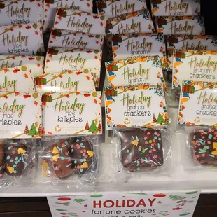 I love chocolate covered fortune cookies, but only usually get them at weddings. Well, there hasn't been such weddings for a long while. Hence, I didn't hesitate to get some dark chocolate fortune cookies when I came across them here! It's so simple and nostalgic, but oh so satisfying.I also tried the s'mores bark, which was OK as the marshmallow felt a bit old.