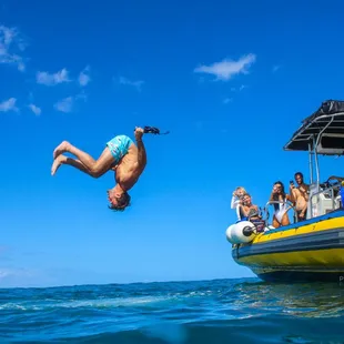 The staff, Jenna, the boat captain, Morgan, crew member, who also transported us between hotel and harbor, everyone was fantastic! Thank you so much for a wonderful experience on the ocean! Staff provided everything we needed for our trip, made sure all details were covered.While the dophins were very shy during our trip out, we did see a few, plus a few shy whales as well. Snorkling was great, saw some turtles. Highly recommend this outfit to see the sealife in the ocean. We would definitely go out again!