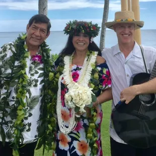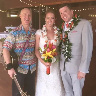 Seven years ago, I posted this review online: "My husband and I got married on Dec., 8, 2008 and you performed at our reception at the Hau Tree Lanai Restaurant. You did an amazing job! We were truly, truly honored to have you perform, and your musicality was the perfect touch for our reception--it helped make the reception both Hawaiian and very tropical in nature. THANK YOU!I just wanted to extend an extended thanks. Ever since that trip to Hawaii (my third, Justin's first), Hawaii has played an increasingly large role in our household. In particular, many thanks for spending a great deal of time with our own resident musicians and for playing Iz's "Over the Rainbow" as our wedding song. It's my favorite song and ever since we got engaged, I knew I wanted it as our wedding song. Your rendition of it was absolutely perfect. I can't wait to get back my friends' video of the ceremony so that I can watch/listen to our first dance. In the car, however, we have your CD playing in our car's stereo on repeat--sometimes I think it's the only thing that helps us maintain our sanity during the crazy commute! We look forward to playing your CD in our nursery once we eventually have kids. It's just really great, beautiful music, and we love it.We're definitely attempting to make visits to the islands a regular part of our life. Perhaps more special is that we're returning to the islands for our two-year anniversary. Hawaii's very much an important part of our lives, and I very much thank you for sharing your portion of it with us--it's with us daily.Thank you dearly for all of your help. Many thanks for being the perfect guitarist at our reception. We loved your music and would highly recommend you to anyone.Mahalo nui loa."Seven years later, what has changed? Doug has become one of our dear friends. His music still plays in our car, and our two little boys are familiar with it. We were honoured to spend time with him on our two most recent trips to Oahu - hiking, at a concert, and at a moonlit picnic on the beach together. Doug is an amazing musician, person and friend. My husband and I had no idea that 8 years ago, the joining of our lives would also mean the development of some amazing friendships. We are so thankful to have Doug and his beautiful music in our lives. Anyone who hires him gets more than just some great music...you also get to know an absolutely fantastic person.