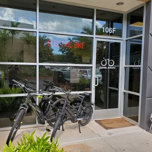 Kapolei shop and some commuter Ebikes, can you spot the Brompton?