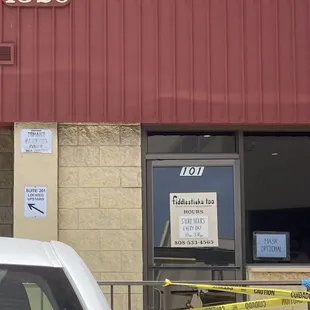 Exterior of store, which is located on a relatively quiet side street with sufficient parking
