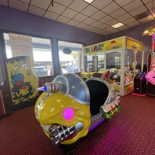 Daughter wanted to come here to play games. Hubby and daughter loves to play games. As we entered, there was no one inside except us but it started getting busy later on in the afternoon. The lady working here was nice and super helpful. My Yelp buddy, Michelle R. got to play a few games. Good times! My daughter and I played air hockey. There's plenty of games inside. Before leaving, my daughter wanted a stuffed bunny rabbit. Hubby got her the bunny rabbit with his points. There were cool games and awesome prizes to win. Big thumbs up from my daughter. We will be back over and over.