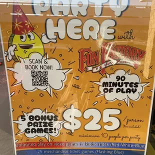 Wow! all I have to say is... AWESOME! I'd say come here to play games , have fun & book a party. Party section must have 10 people minimum @ $25 per card @ 90 minutes of unlimited play time per card. HENCE, the $25. Card is reusable & reloadable. You can also add more cards if your party is more than 10 people. Each card can add money to the usage. Bring your own food & drinks. NO ALCOHOL! Bring your own cake & decorations. No glitter, confetti or Piñata. Keep it Simple & nice! But also HAVE FUN! Doesn't matter MY PERSONAL FEELINGS... PROFESSIONALLY, this place is really outstanding and CLEAN!!!!! Not crowded, plenty of room to MOVE AROUND, for the little ones to BE SEEN & to run. Not run playground style BUT... run as in going from game to game! AND as a parent, we want to make sure the party area is SAFE from the doors or strangers. They have a secured private section for the party. It's really well organized and most importantly, NEAT WITH ATTRACTIVE FUN GAMES!See photos for flyer on parties. Thanks for looking guys! Have a good one & stay safe!A hui hou MALAMA PONO Birdie