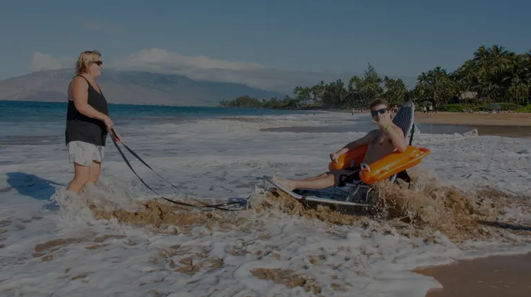 Complex Rehab Custom Manual Ultralightweight Wheelchair. Getting in the water is a passion of this amazing guy!