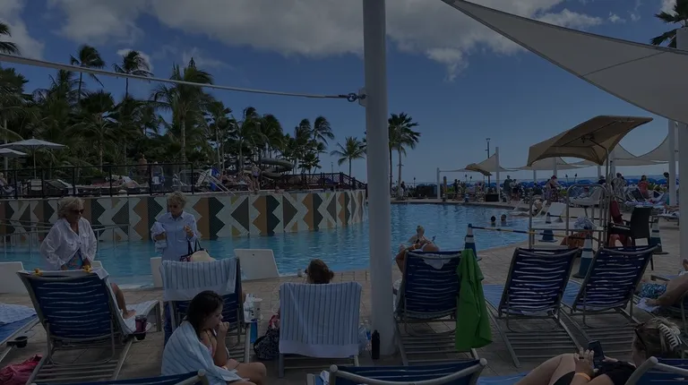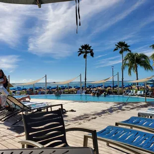 So cool there is an adult only pool and kids water play ground as well two slides (1 covered - 1 uncovered). But the main pool is so long - always a lot of room for all. Plenty of chairs and towels also cabanas for rent.