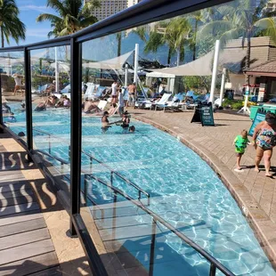 Kids favorite part of staying in hotels is definitely some pool time. The main pool at the Hale Koa Hotel is just lovely! I had no idea reservations were needed, I'm assuming because of Covid, social distance and restrictions. Fortunately I was still able to walk down, already in my swim suit and still secure a spot for the next time slot. There was a small hiccup with their records but a call to front desk fixed that right up. I had no idea how large the entire Hale Koa property was... lots of steps tracked that day lol!As if the pool area weren't enough to look at, there's the Waikiki beach just steps away. Lots of lounge chairs, tables, showers and shaded areas. The bar is very close by but no wait service *womp womp*. Super cool kiddie areas with a pirate ship theme. Two slides for all ages that can pass the swim test. Adult area with an infinity poolEverything felt very safe. After the pool area is emptied, staff gets right to disinfecting. They schedule the proper time to clear, clean and reset everything before the next group is allowed to enter. There were no crowds and there is plenty of space to allow for social distancing without masks while enjoying our water play. This pool experience has spoiled my daughter. Now there probably won't be another hotel pool experience on island that can compare. With that said, I definitely recommend if you're a guest!