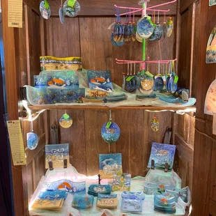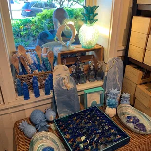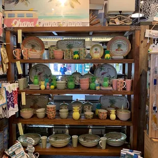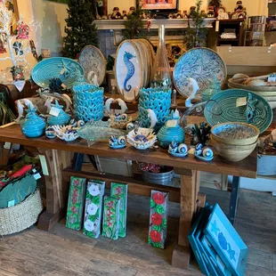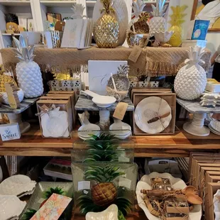 This store is filled with tons of items to decorate your home or garden plus a class a plethora of gift items and souvenirs. What a fantastic shop! Whether you are looking for a smaller item like a candle, a picture frame or a few toss pillows or something larger is larger like a mirror, framed print or small piece of furniture, this store has it all. With Hawaiian touch! Now that doesn't mean everything has a Hawaiian prnt; many items represent the colors of the sea, sand, and sky, a very soothing palate that goes with anything and everything. There were lots of beautiful serving pieces, glassware, ceramics, as well as tablecloths, tea linens, napkins and table runners. I particularly loved all the hand carved wooden items like round bowls in a variety of sizes and serving platters. I use them as charcuterie platters with the small bowls holding nuts and olives. Lots to look at so make a few rounds! I was there in late September and they had many Falk items during that time. Definitely worth stopping in!Everywhere you turn there is more to look at you look at I was there in the fall and so they had many Halloween and Thanksgiving items as well if you're not into home décor they are is home décor they also have a very nice selection of jewelry both fashion jewelry and some high end pieces that were unique and reasonably priced