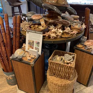 Lots of home decor items here...it's actually primarily what they have. I loved the beautifully crafted wood bowls and plates, and many other home accents, but what I purchased today (or what my boyfriend purchased for me as one of my birthday presents) was a pair of beautiful & not cheap pink mother of Pearl set in14k rose gold plumeria earrings. The jewelry is high quality and uniquely designed. I was looking for interesting & beautiful made Hawaiian earrings all week, and I finally found the pair I wanted. Comes with a little card on the meaning of the plumerias petals. And as a free gift with my purchase, I got to pick an oyster to have opened up for its pearl! That was a nice surprise! You can just keep the pearl as is, or have it drilled to set in jewelry. Overall this was an excellent experience!