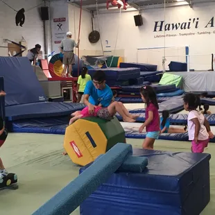 I'll admit, when my daughter asked me if she could take gymnastics classes I raised my eyebrows. She is around the 95th percentile for height for her age range, 8 years old, and couldn't even attempt anything resembling a cartwheel. The other kids in her class were around 3 years younger and literally half her height. Not going to lie, I wasn't expecting too much, I figured that the proverbial ship had sailed. Well... her first class was 6 months ago and today I watched her execute a perfect cartwheel.Hawaii Academy does seem more focused on tumbling that any of the other gymnast skill sets (which my daughter appreciates) and even has classes specific to things like cheer or ninja training (which sounds so cool!)Located in Kalihi in what looks like a huge warehouse with a bunch of trampolines, whatever they're doing... works! So I am giving them 4 stars for turning my daughter's dream into reality. The lack of that fifth star is because I get hot sitting in the non-air conditioned complex waiting for her to finish class.