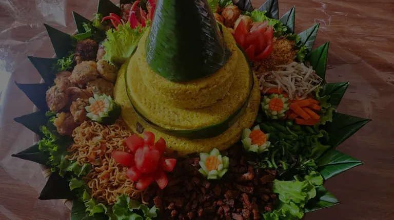 Yellow coconut rice. Nasi tumpeng.